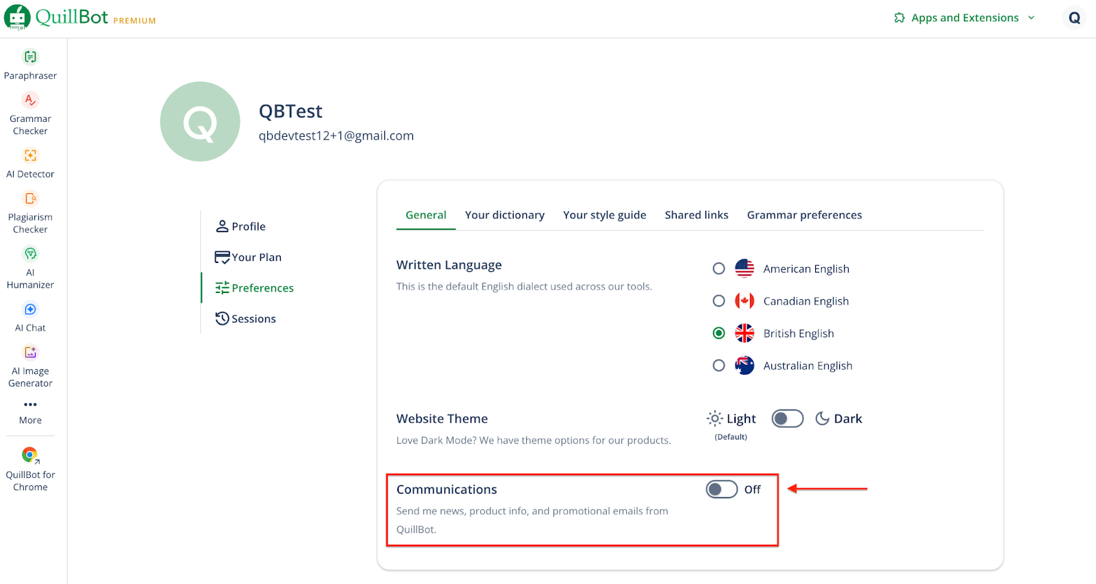 If you no longer want to receive promotional emails or product updates from QuillBot, you can easily manage your email preferences in your account settings.
