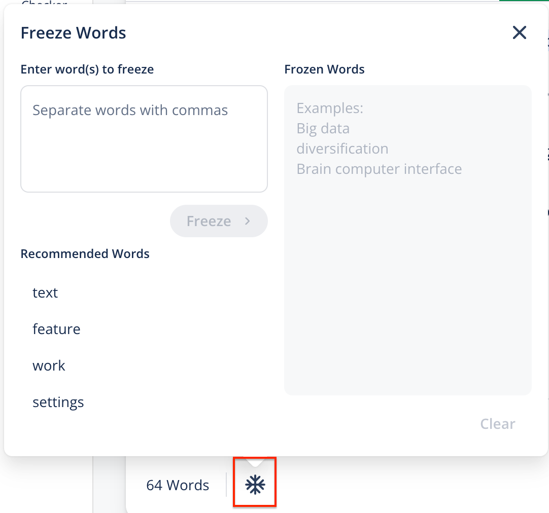 - Click the Freeze Words icon to open the tool.