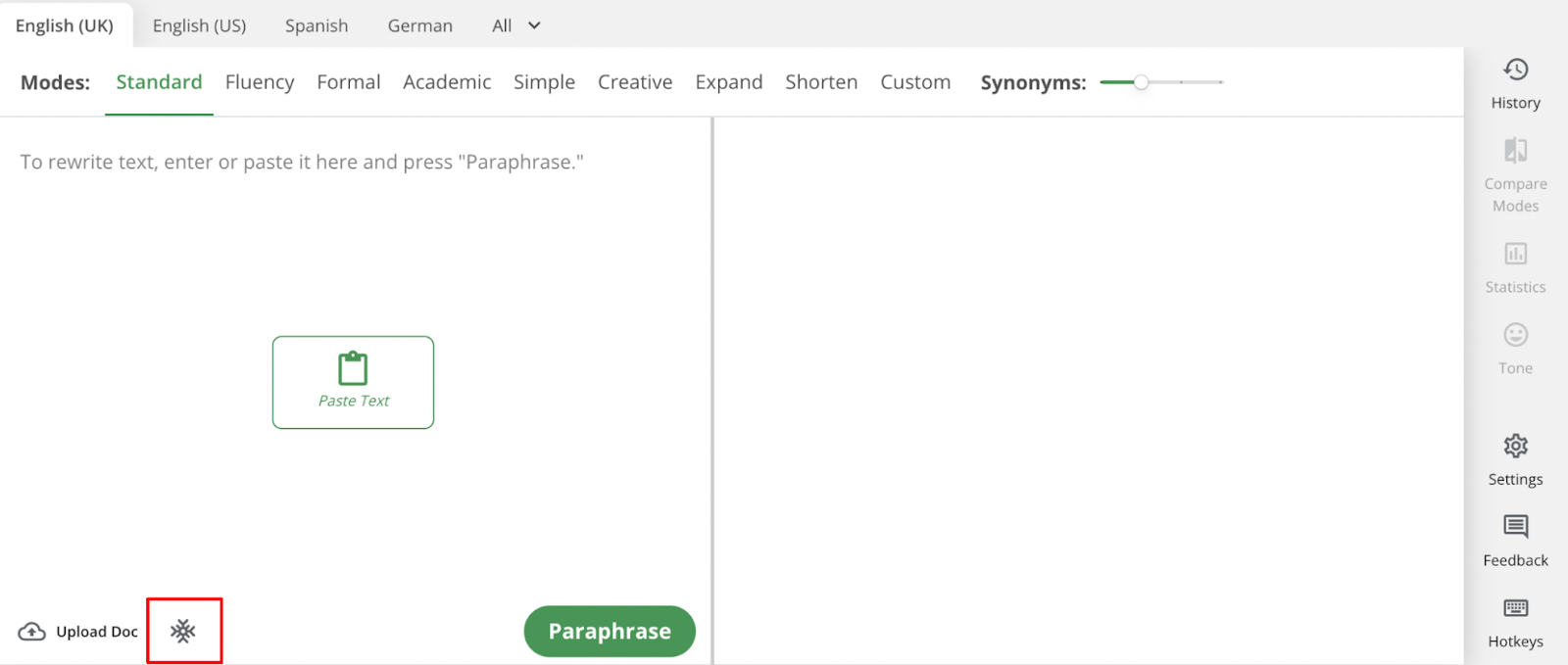 - Paraphrase your text. The words you froze will remain unchanged (in supported modes).