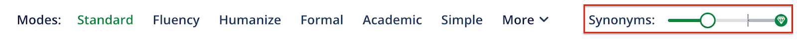 When available, adjusting the Synonym Slider will instantly re-paraphrase your text.