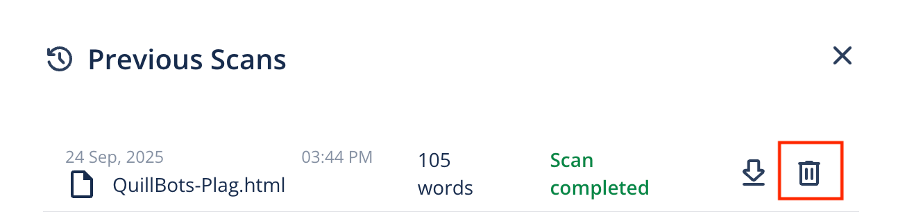 - Click Previous scans in the top-right corner of the Plagiarism Checker.