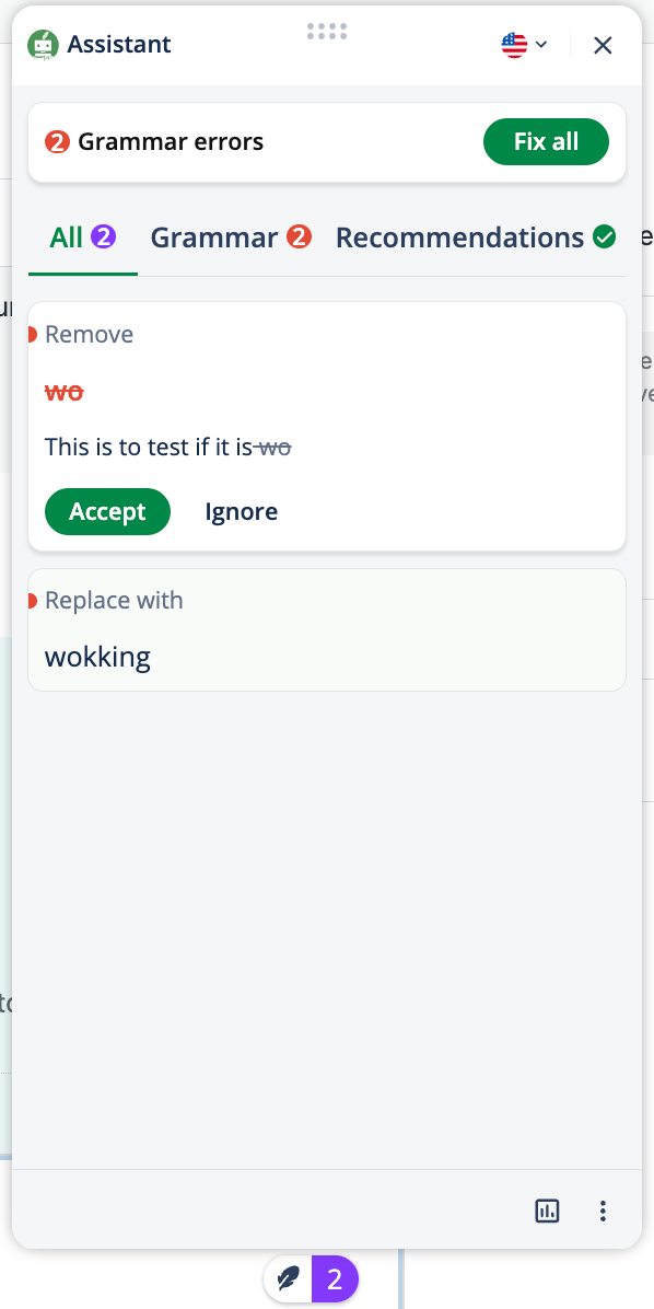 - Click Fix all to apply all grammar corrections automatically.